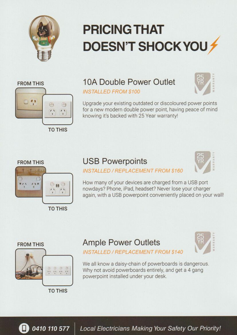We are local electricians making your safety our priority!. Please contact our team on 0410 110 577. We are available 24/7 for emergencies. Contact Us below.