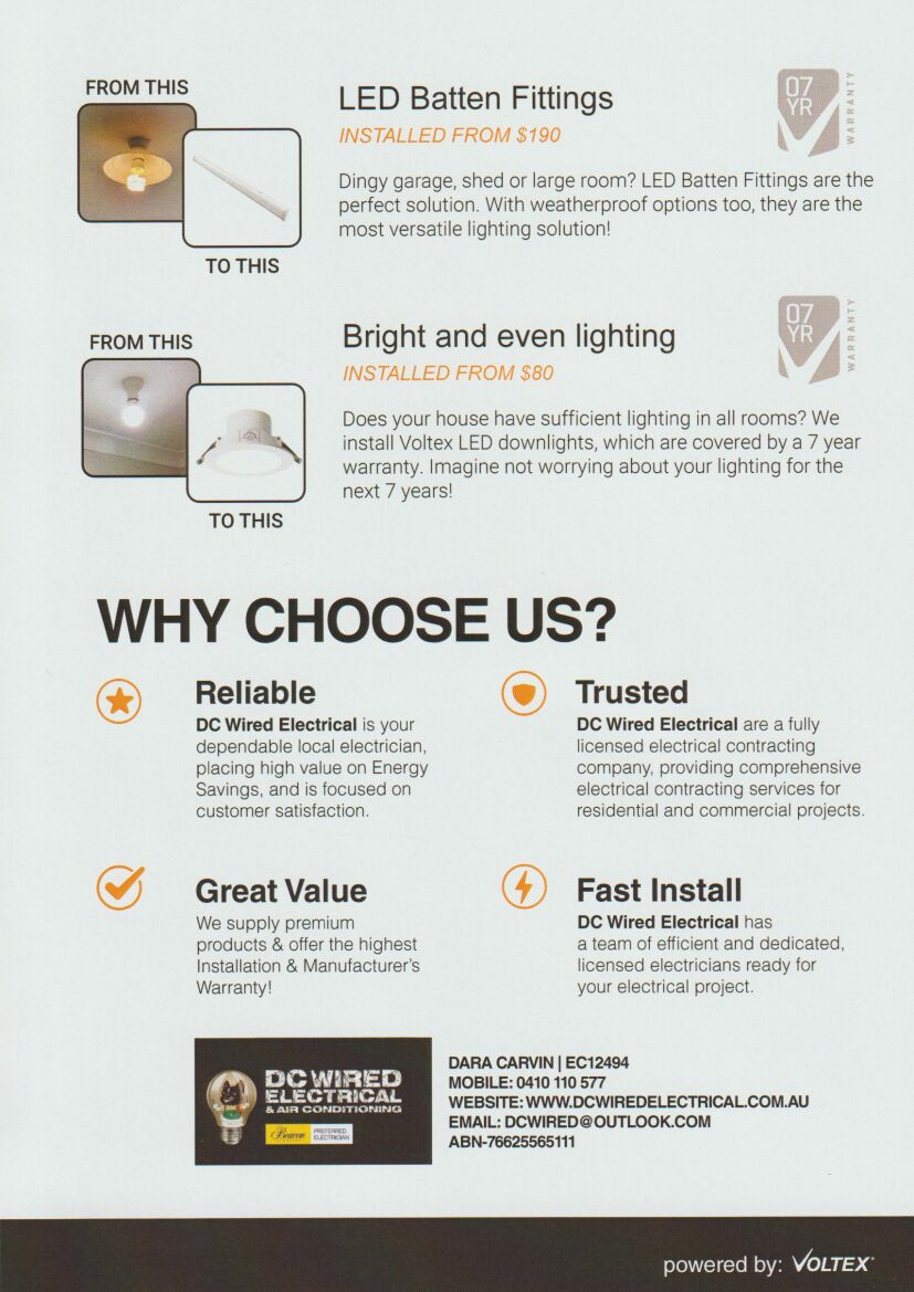 DC Wired Electrical is a small business based in Perth for all your electrical needs. We are local and reliable, with affordable rates, offering a great service and free quotes.